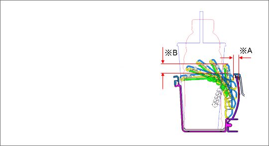 NIFCO's unique open & closing mechanism enables space-saving LID opening and closing (* A). It can be set in a limited space (such as a console). In addition, the protrusion of the LID can be compressed (*B), and the convenience of cup insert & extract has been taken into consideration.